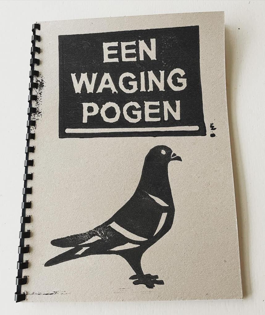 De voorstelling ‘Een Waging Pogen’ (poëtisch dadaïsme met een duif) is een wervelende spoken word performance met een dadaïstische interpretatie van de maatschappij. Op absurde wijze worden de welbekende witte man, het milieu en de algehele samenleving geobserveerd. Een energieke voorstelling waarin je vriendelijk wordt vervreemd.