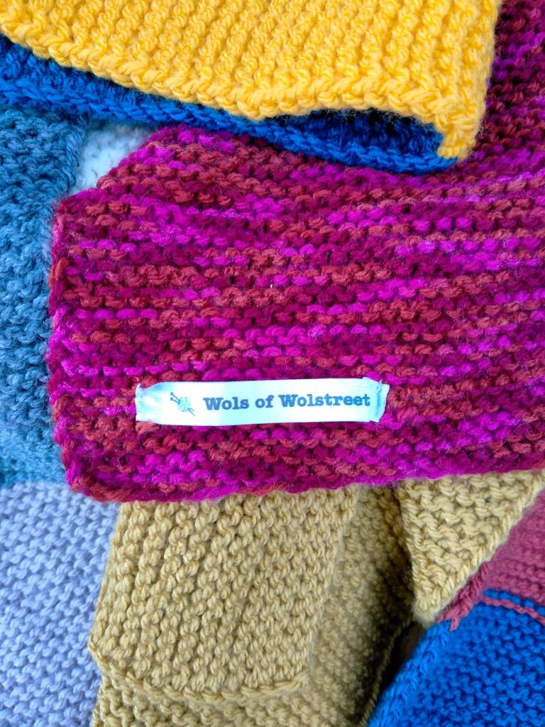 Dit zijn de sjaals van Wols of Wolstreet, bekend van het titelgedicht uit de bundel ‘Een Waging Pogen’. In diverse kleuren(combinaties), wolsoorten en maten (M en L). Prijzen bij de foto.