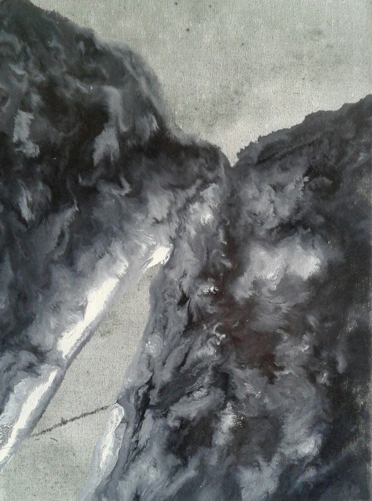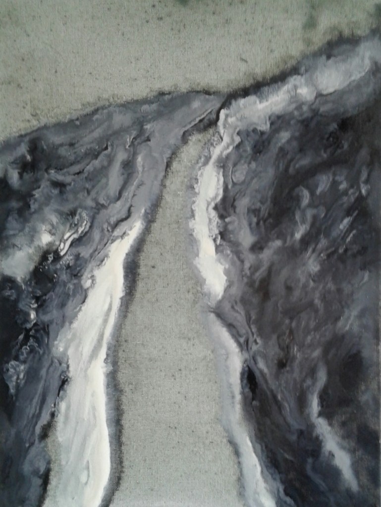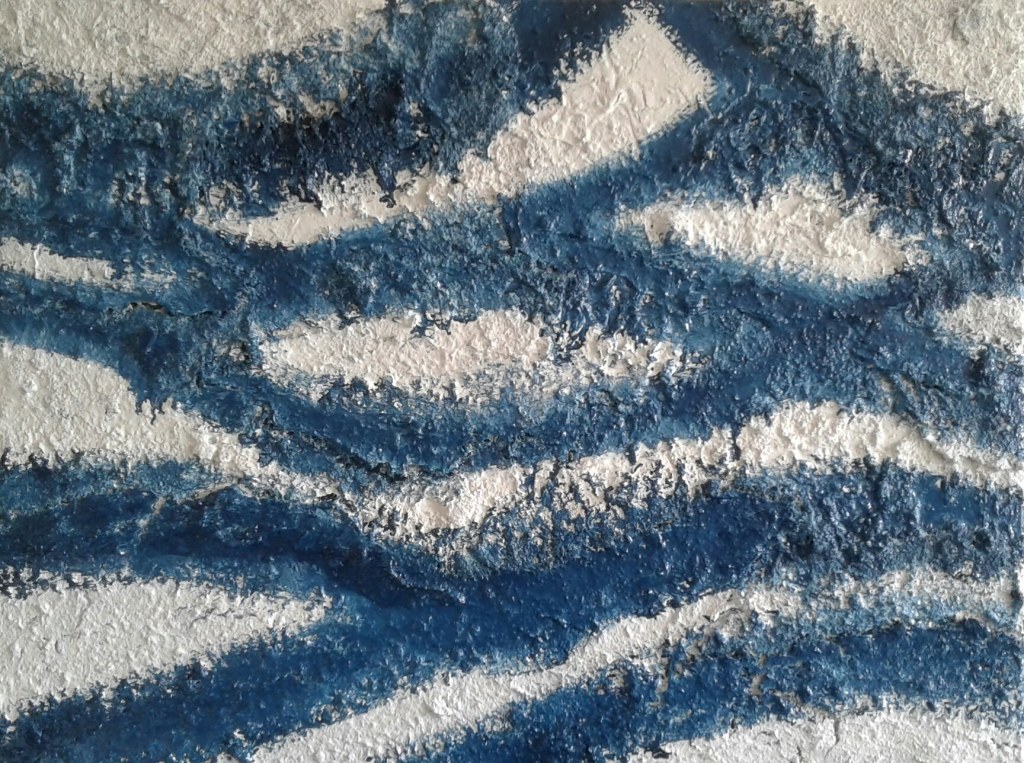 Diverse verfsoorten en gipsverband op doek