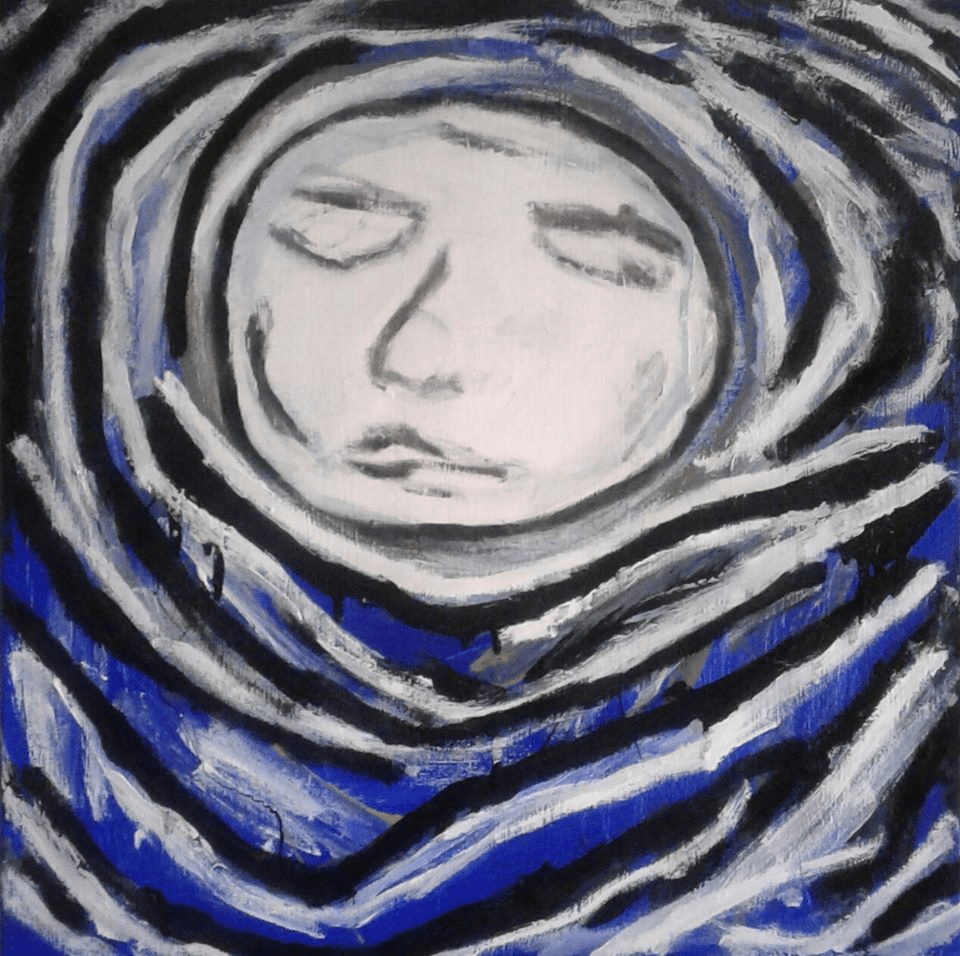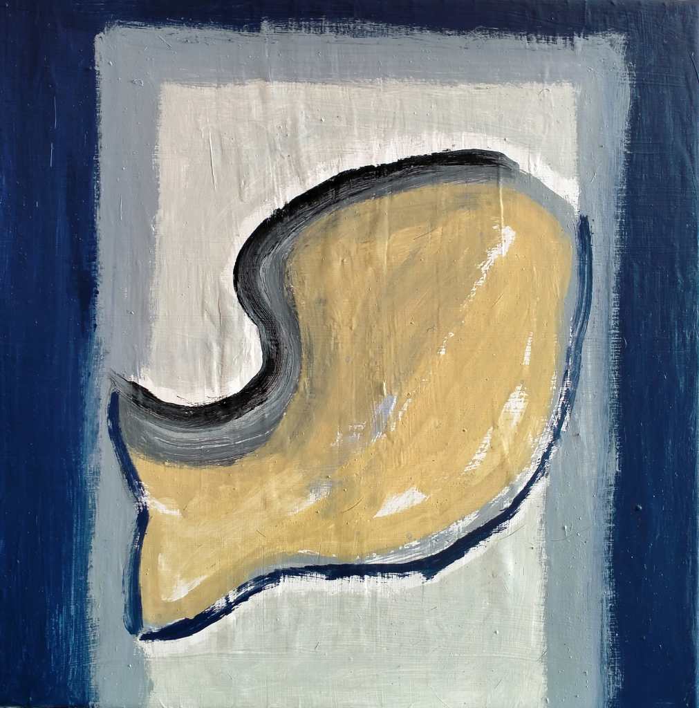 Diverse verfsoorten en slijpschijf op doek