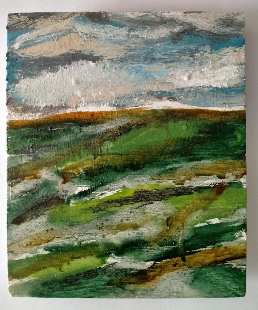 Diverse verfsoorten en materialen op paneel