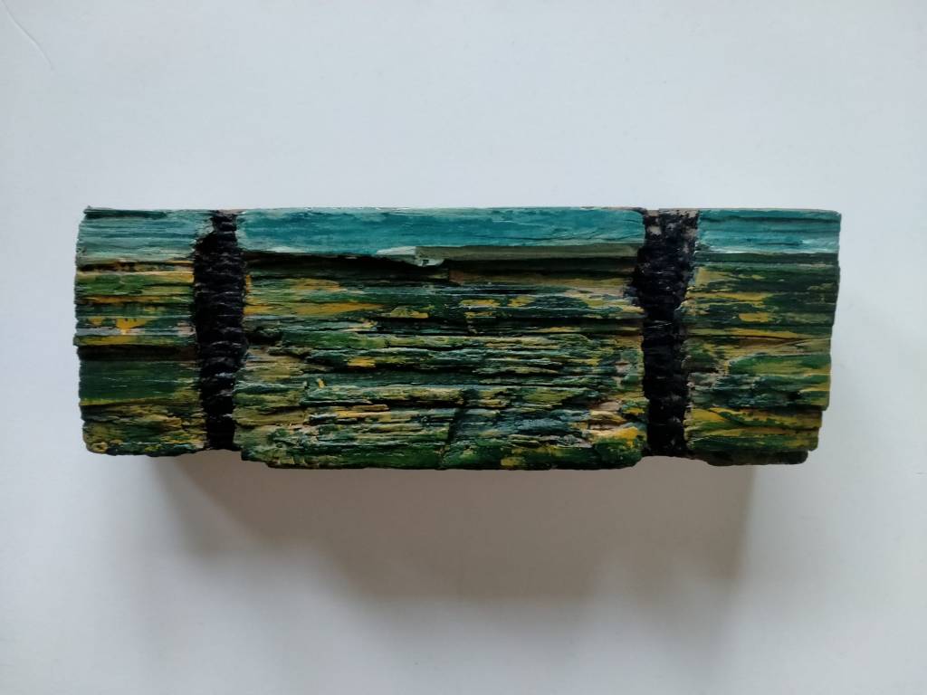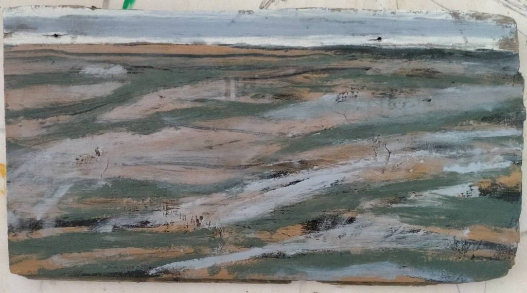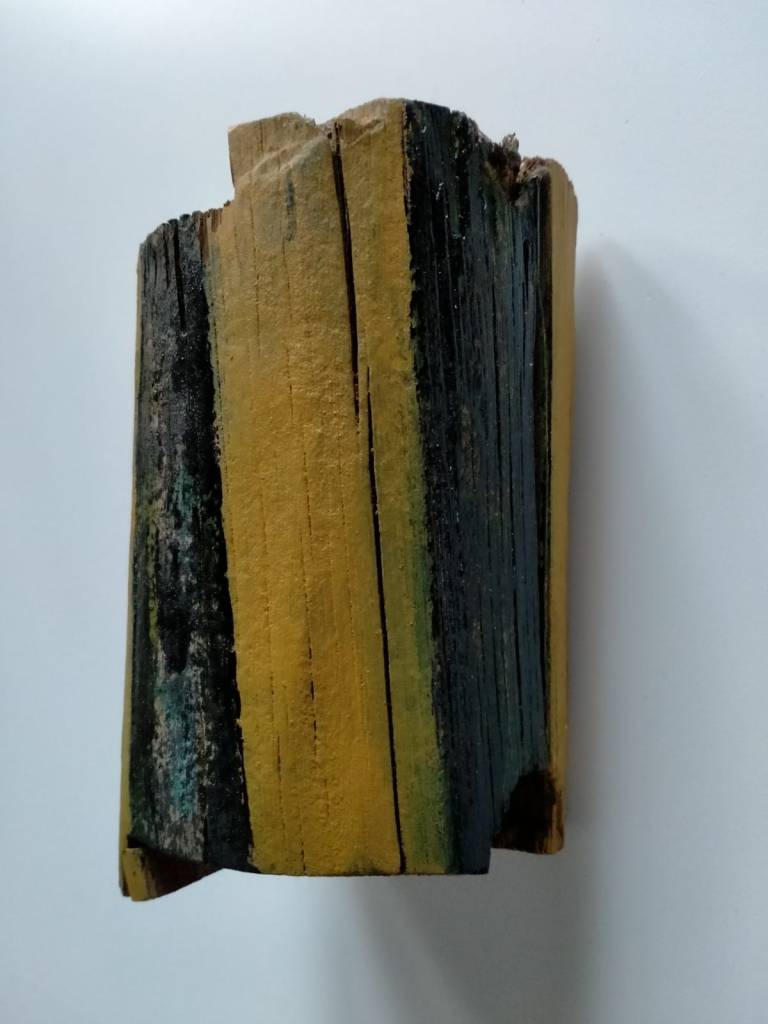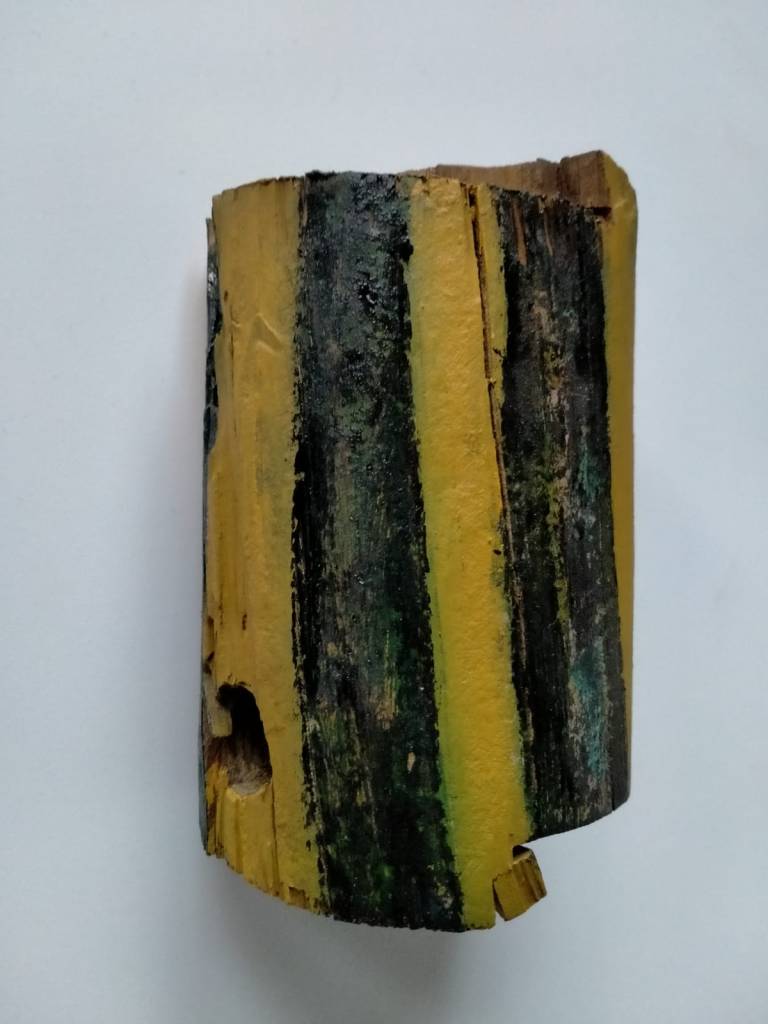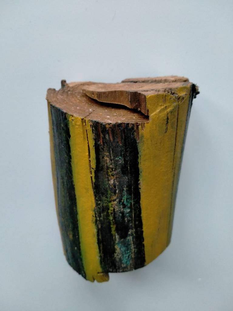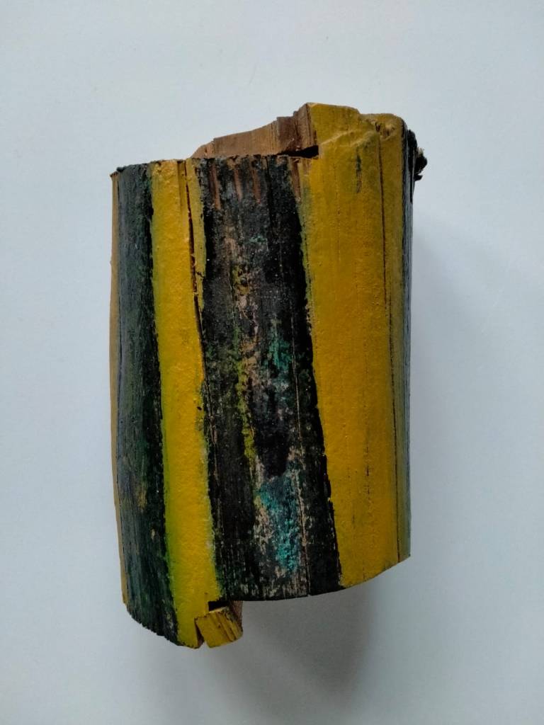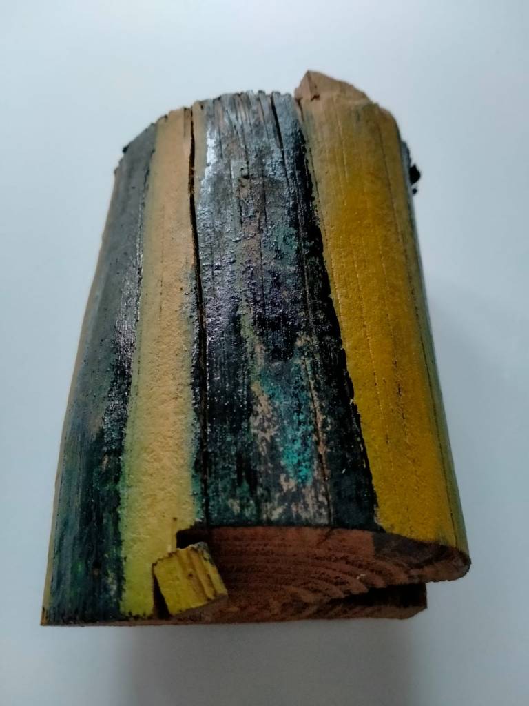 Diverse verfsoorten op houten balk